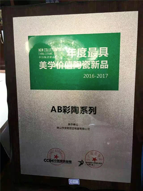 三款产品全部荣获“2016年度最具美学价值陶瓷新品”奖项