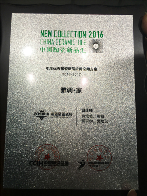 荣获“2016年度十佳陶瓷新品应用空间方案”奖项