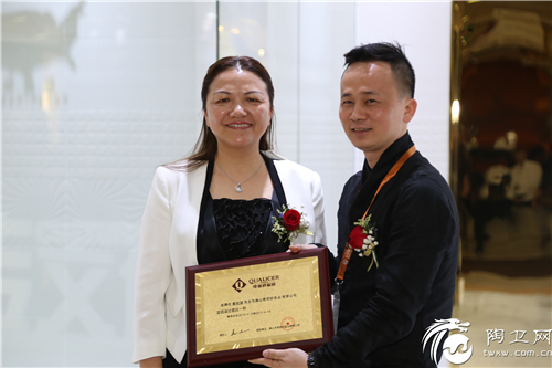奇丽砂总经理汤滨为产品研发设计顾问温德民授牌