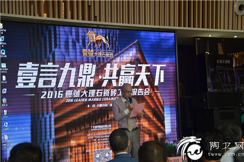 4月19日下午,壹號大理石瓷砖在华夏中央广场召开了以“壹言九鼎·共赢天下”为主题的壹號大理石瓷砖工作报告会。参加本次报告会的有广东昊晟陶瓷有限公司总经理杜湛权、壹號大理石瓷砖品牌营销总经理潘应龙、世界模特大赛冠军褚亚琦小姐、空间策划大师郑成标、壹號顾问团及各行业众多知名媒体和壹號品牌经销商等出席了本次会议。