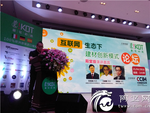 陶卫网讯 4月21日,“互联网生态下建材创新模式论坛”在中国陶瓷总部陶瓷剧场举行。本次活动由香港iKOT集团主办、中国陶瓷总部协办。香港亚长盈建材集团及iKOT集团CEO李景澍,美亚长盈建材集团董事李志忠,香港经济师协会永远荣誉会长范维纲,中国陶瓷总部营运总经理汤洁明,中国国际电子商务中心主任黄剑虹,中国首个设计师电商平台创办人王建国,广东省陶瓷协会会长陈环,佛山室内设计协会秘书长吴虹霏,江西设计力量发起人之一王军富等领导嘉宾出席了此次论坛。