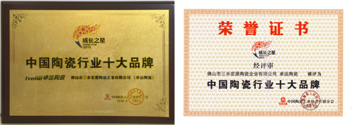卓远陶瓷“中国陶瓷行业十大品牌”