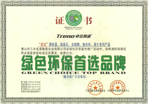 2016年2月,卓远陶瓷再度荣膺“绿色环保首选品牌”