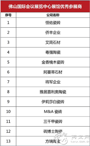 优秀参展商名单