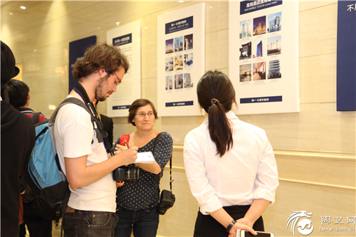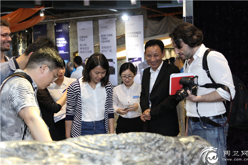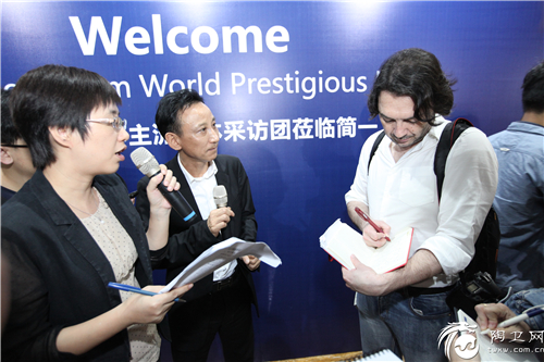 (外国记者认真记录简一大理石瓷砖发展故事)