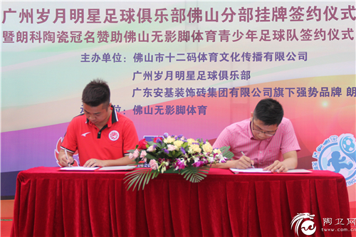 签约仪式的顺利举行,意味着朗科陶瓷将冠名赞助佛山无影脚体育足球U11少年队和U13少年队一年的合作时间,希望众多热爱足球、富有足球天赋的青少年在广州岁月明星足球俱乐部和佛山无影脚体育两大团队的专业技术指导和训练下,能不断提升自己的竞技水平!