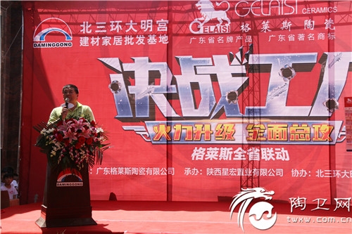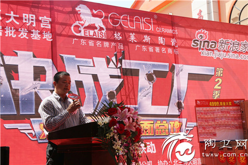 下午2点,活动在火热的开场舞中正式拉开序幕,经销商、厂家代表、市场领导以及协会领导纷纷为格莱斯省联动陕西站活动致辞。在致辞中,集团第三营销中心总经理兼格莱斯陶瓷品牌总经理黎汝让郑重向广大陕西业主们承诺:“今天【决战工厂第二季】陕西省联动的成功举办,我们拿出了大幅度的优惠措施让利给陕西消费者,让格莱斯优异的产品走进陕西的千家万户。格莱斯郑重承诺,将一如既往地生产优质的产品,为消费者构筑经典优雅的生活空间。”