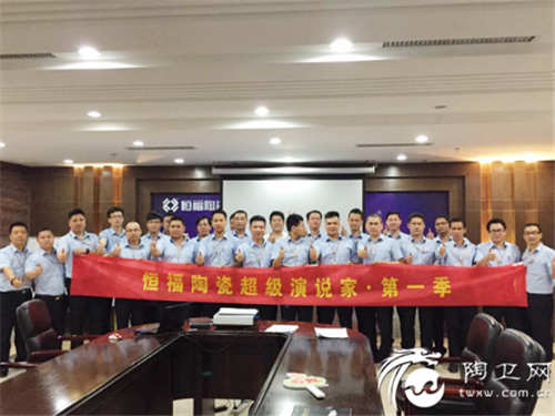 一个优秀的品牌,必定具备一支优秀的团队,一支优秀的团队,其成员必定具备昂扬的斗志、强大的协作能力、十分的敬业精神,并且积极向上、开拓进取。恒福的销售团队就具备这样的素质。面对2016年依旧低迷的建陶市场,恒福销售团队没有气馁,没有放弃,特别是经历了《超级演说家》培训后,斗志比以往更加昂扬,精神面貌更是焕然一新,就像打了鸡血一样。