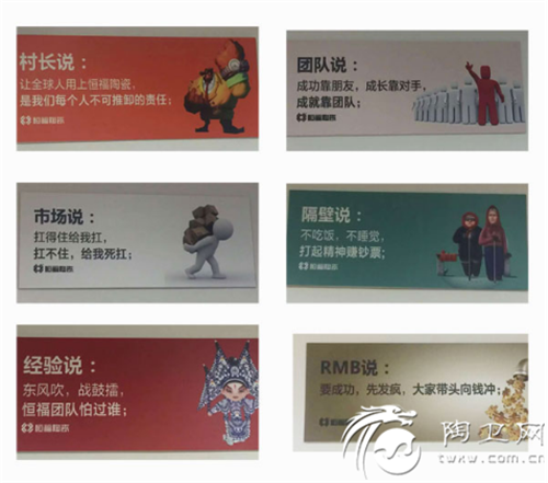 只要你留意一下,在销售部办公室的墙壁上,最近贴上了一些励志的标语,有“市场说”、“村长说”、“团队说”、“经验说”等标语,让人看后备受鼓舞。“东风吹,战鼓擂,恒福团队怕过谁;要成功,先发疯,大家带头向前冲。”这个就是恒福销售团队的口号,这同时也反映了恒福销售团队今年的精神面貌。
