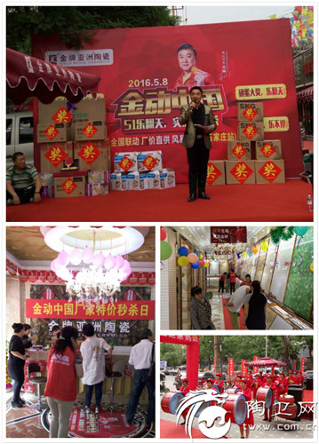 5月7日-8日,全国各地一片沸腾,金牌亚洲陶瓷“金动中国·五一乐翻天”由总部操盘,携手第三方公司,在百座城市盛大绽放。金牌亚洲陶瓷全国各大门店全力以赴,在全国大地全线飘红,超额完成任务,再次创造出行业销售奇迹的神话。实在的战绩成为最有力的实力见证。气势如虹的行业壮举,焕发出金牌亚洲各地经销商前所未有的旺盛活力,为2016年品牌的全局发展奠定了良好的基础。