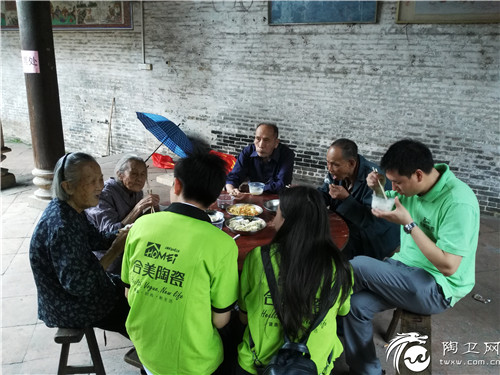 中午,合美陶瓷的义工们便在村里的祠堂为老人们准备了午餐。席间,大家就像一家人,其乐融融的场景让在场的每一个人心里都多了一份暖意。