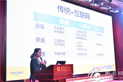 长治欧神诺刘超重点阐述,有关品牌运营思维模式转变历程,到团队建设,及老板自身的角色扮演,最后,用短短15字传达出终端品牌做强做大的秘诀,那就是“定方向 做流量 拼包装 铸口碑 管好账”。于此同时,其贤内助张娜,作为销售女强人,更多是从执行上为大家分享了团队做强做大的真经,她谈到的做老板的三个能力,即员工精神激励、团队激励体系建立能力、公司文化塑造能力,真正令在场所有经销商获益匪浅。