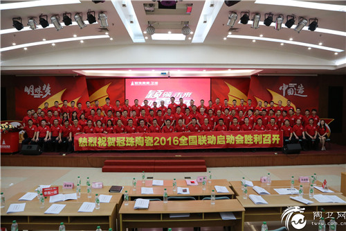 5月5日,以“颖领未来,劲惠全国”为主题的冠珠陶瓷全国联动启动大会,在佛山总部召开。冠珠近两百多名将士齐聚一堂,用激情与信心,迎接即将开启的全国联动大战,创造属于冠珠人的辉煌。冠珠品牌总经理、全国联动活动总司令邓勇为本次启动会发表动员致辞,他表示此次活动得到了集团公司的支持,以及全体营销人员充分的准备,大家必须有斗志、更有能力做好这次的全国联动,而且要做出亮点、做出成绩。邓总的发言不仅给予大家莫大的鼓励,更提振了全体人员的信心。