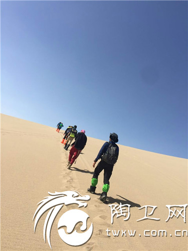 5点就向大漠迈进了,黑咕隆咚的路显得头灯微弱的光线格外明亮,沙漠一深一浅地拔腿十分吃力。