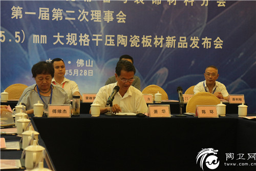 萧华在致辞中阐述了目前全球陶瓷业发展现状,大规格陶瓷薄板必定是未来的发展趋势和方向,他表示,对2015年来说,中国陶瓷行业出现了三十多年来从未有过的负增长,从此点可以看出,传统陶瓷行业过去的增长模式已经达到了分水岭,必须转型升级,通过创新驱动等改变传统的发展模式,中国当前必须以低碳、节能、环保的建筑装饰材料抢占未来更多的市场份额。