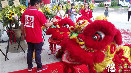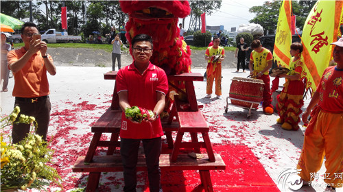 锣鼓阵阵送吉祥,瑞狮起舞好运至。上午10:38,随着爆竹声响起,大汉瓷砖佛山旗舰店总经理梁耀锵先生进行醒狮点睛,赋予其生命、灵性,从而为大汉瓷砖及现场的来宾带来吉祥如意的好兆头。狮子点睛繁荣富贵,祥狮助阵威震四方。瑞狮在铿锵的锣鼓声中起舞,为现场增添一份喜气和威武。庄重而精彩的醒狮采青过后,大汉瓷砖佛山旗舰店在四方宾客的祝福中,开启红火未来。