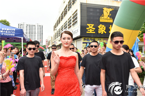 早上9点58分,匡娟女神准时到达活动现场。现场的小粉丝们一早就在路口等候着女神的到来。六名保镖护驾,匡娟女神踏着现场的红地毯,走向舞台。小粉丝们已经hold不住了,不停摇动着手上的小手拍,为匡娟女神呐喊助威。消费者们则纷纷拿出相机争取捕捉女神优雅万方的身姿。女神为现场观众演唱了美妙的歌曲之后,随后又带领四位模特小姐进行产品走秀,展示着加工成各种造型的格莱斯产品。宣城的业主朋友们纷纷赞叹,匡娟女神的多才多艺真是让人折服啊!