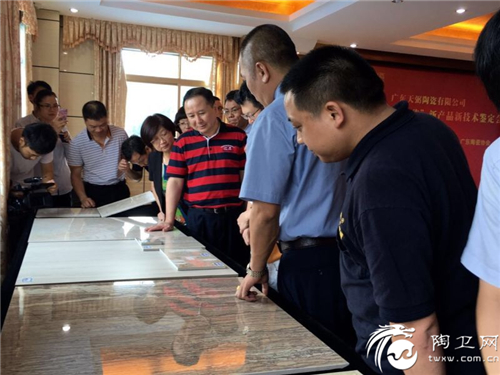 广东省建筑材料行业协会创会会长吴一岳、广东陶瓷协会会长陈环,清远市经信局副调研员谢文琪、天弼陶瓷总经理黎友海、常务副总经理王正旺、营销总经理叶晓东、副总经理孙小风、总经办主任章庆卫、技术主任汪成东以及该公司相关负责人和行业媒体出席了此次鉴定会。