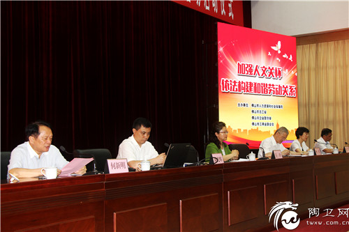 6月14日,佛山市人力资源和社会保障局、市总工会、市企业联合会、市工商联在市政府机关小礼堂,联合举行“2016年佛山市开展构建和谐劳动关系系列宣传活动启动仪式”。佛山市人大常委会副主任、市总工会主席林征,市政府副市长王玲,市人力资源社会保障局局长刘珊,市总工会常务副主席刘光辉等领导出席启动仪式,对构建和谐劳动关系工作做出重要指示。