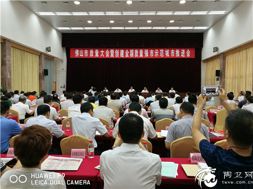 会议由市委书记鲁毅同志主持,市长朱伟同志、省质监局局长任小铁同志出席了会议。首先市质量强市工作领导小组办公室主任、市质监局局长梁志光汇报全市质量工作情况,对我市创建强市示范城市重点工作进行说明;随后,表彰了2015年佛山市政府质量奖获奖企业,并为获奖企业颁发牌匾;市长朱伟同志、省质监局任小铁同志均作出了讲话,最后,鲁毅同志对会议作总结讲话。