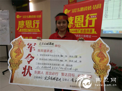 动员会近尾声,海口东鹏操盘手李晓龙带领现场销售精英宣读军令状,现场士气高涨。