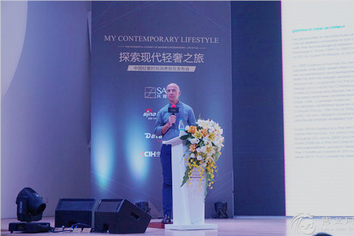 在此次活动上,意大利灵魂设计师、法国卢浮宫修缮设计师卢卡·罗西向大家诠释了他心中对现代轻奢的概念,并分享了自己的优秀作品和设计理念。他还表示,在设计兴辉新展厅时,他认为“现代轻奢”的概念就是用简单的线条构造出来简洁优雅的设计感觉。比如铜条和水泥做出来的搭配效果,给人非常舒服、非常舒适的感觉等等。他指出,轻奢首先一定是舒服舒适的生活状态,轻奢是普罗大众都可以感受到的一种生活体验,是一种生活方式。他认为,哪一种生活让人感觉到舒适、舒服,同时又非常精致不简陋,这就是轻奢最重要的一点。随后,卢卡还现场点评了一名设计师的作品。