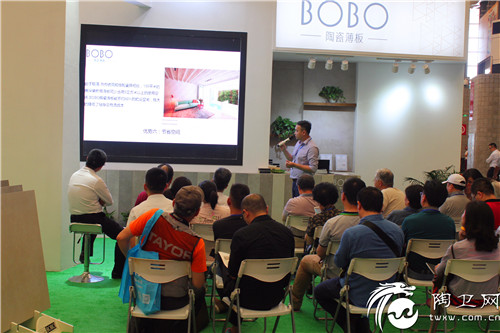 LA’BOBO陶瓷薄板中国区营销总监何永斌为大家做了《科技创新 引领建筑时尚》的主题演讲,他为大家一一讲解LA’BOBO陶瓷薄板所取得的发展成绩,同时也对LA’BOBO陶瓷薄板的优势做了详细的描述,并隆重的为大家介绍了未来LA’BOBO陶瓷薄板要做的事情:如近期开发了光触媒技术以及攻破了抗菌陶瓷薄板技术,未来偏重于让建筑美学引领建筑潮流、开发功能性产品焕发建筑生命力等。